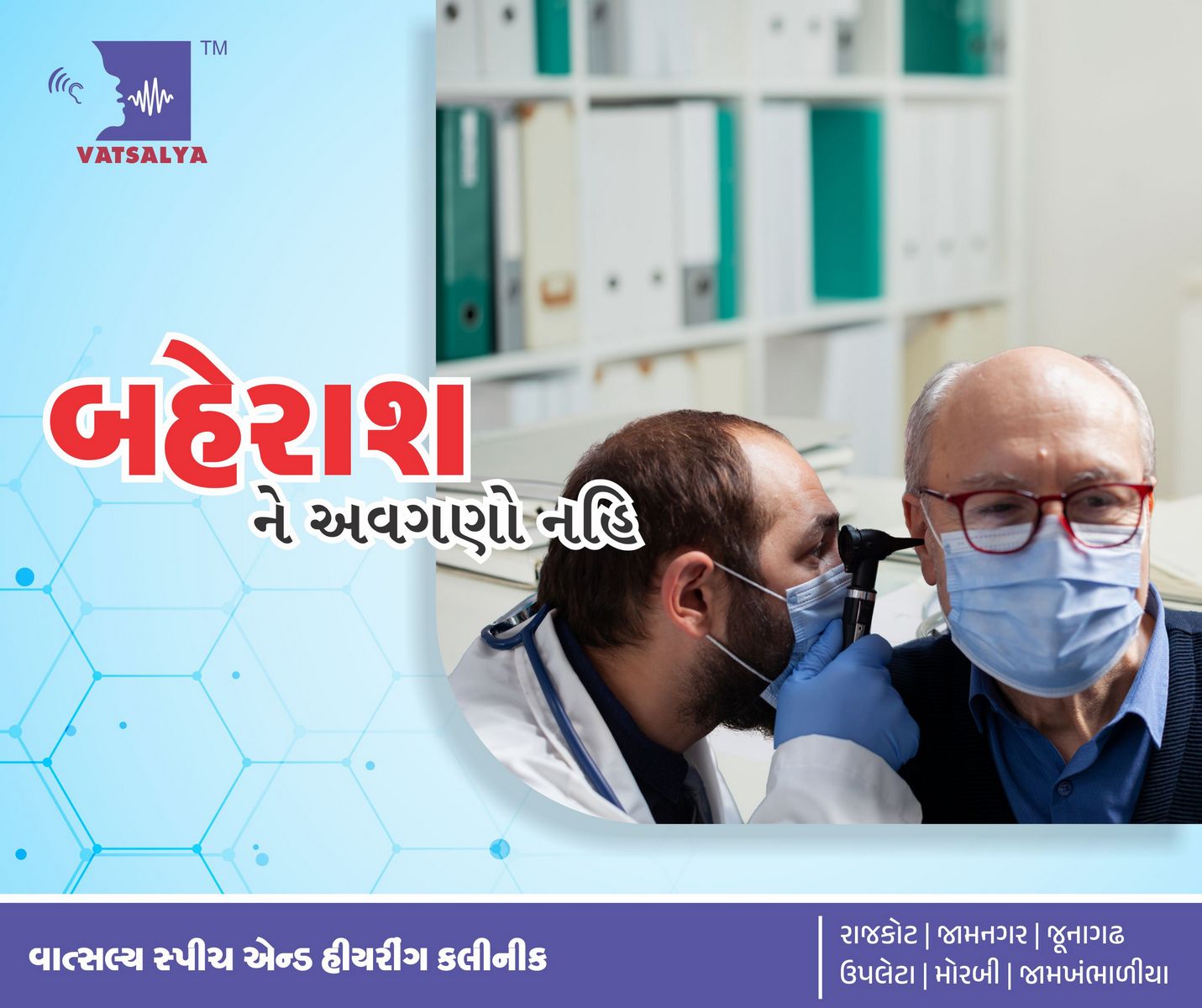 સમયાંતરે તમારા કાનની તપાસ કરાવો. જે રીતે તમારી આંખોની તપાસની સમયાંતરે જરૂર હોય છે; એવી જ રીતે તમારા કાનની ચકાસણી પણ સમય-સમય પર કરાવવી આવશ્યક છે. કાનને લગતી કોઈ પણ સમસ્યાને ક્યારેય પણ અવગણો નહિ અને યોગ્ય સમયે ક્લિનિક પર તમારું હિઅરીંગ ચેકઅપ જરૂરથી કરાવો. આજે જ તમારા નજીકની "વાત્સલ્ય સ્પીચ એન્ડ હિઅરીંગ ક્લિનિક"ની શાખાની એપોઇન્ટમેન્ટ મેળવો. વાત્સલ્ય સ્પીચ એન્ડ હિઅરીંગ ક્લિનિક રાજકોટ । જામનગર । જૂનાગઢ ઉપલેટા । મોરબી । જામખંભાળીયા